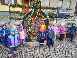 Zusammen mit unserem Erzieher Jakob und unserem Praktikanten Felix starteten wir am 30.03.2023 vom Kindergarten zum bunt geschmückten Osterbrunnen. Da gab es viele tolle Ostereier zu bestaunen. Danach führte uns der Weg ins Klostergelände; wir suchten die ersten Frühblüher. Dort entdeckten wir auch Ziegen; sogar kleine Zicklein waren dabei. Was für ein schöner Ausflug.