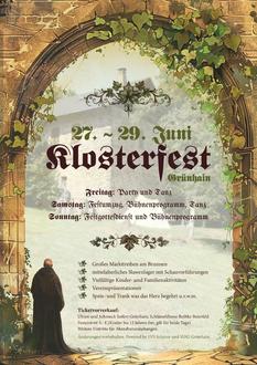 Alle (3) Jahre wieder, unser Grünhainer Klosterfest steht an! Vom 27. - 29. Juni 2025 gibt es im historischen Ambiente für Jung und Alt viel zu erleben. Los geht´s am Freitagabend mit einer Tanzparty im großen Festzelt mit der Kapelle „Saitensprung“ (ja, nach 18 Monaten Abstinenz und Abschied von der Bühne kann man die Grünhainer Lokalmatadoren wieder einmal erleben). Mit dabei außerdem „DJ Dan“, eine Tanzshow des Beierfelder Faschingsvereins und eine Karaoke-Party. Tickets gibt es für 10 € (VVK) oder 12 € (AK), Einlass 19.00 Uhr.