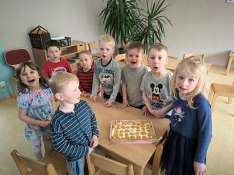 Den Gründonnerstag begannen die Eichhörnchen mit einem gemeinsamen Osterfrühstück. Der Tisch war mit leckeren Sachen im Gruppenzimmer gedeckt.