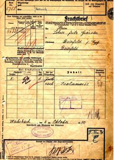 Vorderseite eines Frachtbriefes vom 06.10.1930.