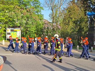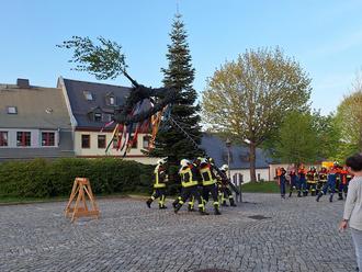 In Grünhain halfen die Löschzwerge beim Maibaumstellen.