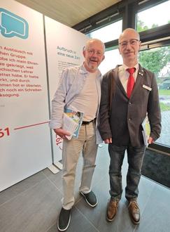 Andreas Roth ehemaliger Mitarbeiter im GS des DRK der DDR mit Museumsleiter André Uebe.