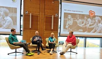 Vizepräsident Schön im Interview mit Sachsens Vizepräsidentin Anette Strauß und weiteren JRK-Vertretern.