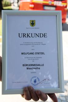 Der Stadtrat Grünhain-Beierfeld hat in seiner Sitzung am 8. Mai 2023 beschlossen, die Bürgermedaille für besondere Verdienste an Herrn Wolfgang Stietzel zu verleihen. Mit der Entscheidung unterstützte das Gremium den Vorschlag der Stadtratsfraktion der Freien Wählergemeinschaft.