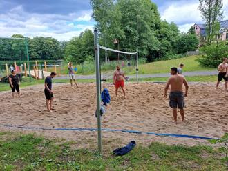 Schnell fanden sich die Teams für ein Beach-Volleyball-Match.