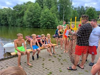 Abwechslung hatten die jüngsten Besucher bei Bootsfahrten, Slackline, Balancier- und Ballspielen. Pünktlich 16 Uhr traf Neptun im Naturbad ein und nahm die Taufe vor.