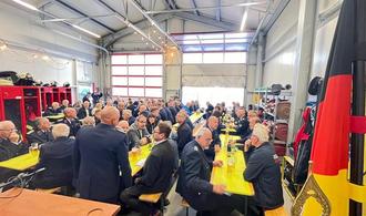 Wo sonst die Feuerwehrtechnik steht, hatten an diesem Tag die Gäste Platz genommen.