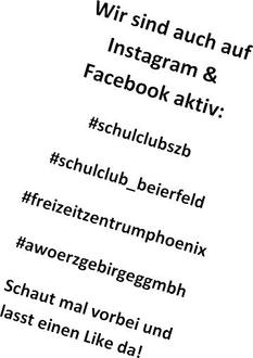 | Mo | 15.07. | Offenes Angebot Kommt vorbei zum Spielen, Basteln, Ideen sammeln und Quatschen! | 12.00 Uhr bis 18.00 Uhr Schulclub Schwarzenberg | - keine Anmeldung erforderlich - Taschengeld für Verpflegung |