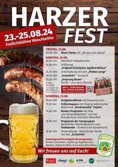 Vom 23. bis 25. August 2024 findet an der Freilichtbühne in Waschleithe das traditionelle „Harzerfest“ statt. Organisiert und durchgeführt wird es, mit Unterstützung der Stadt, von den Waschleither Vereinen. Die Vorbereitungsarbeiten sind in vollem Gange, das Festprogramm steht und der Kartenvorverkauf für den Abend mit den „Ursprung Buam“ läuft. Der Eintritt zum Festgelände ist am gesamten Wochenende frei. Eintrittspflichtig ist nur der Samstagabend. Karten für das Konzert mit den „Ursprung Buam“ sind unter Tel. 0152 08307942 erhältlich.