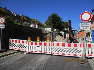 Noch bis 6. Oktober 2023 ist die Auer Straße in Grünhain im Bereich der Hausnummern 22 – 28 für den Verkehr voll gesperrt. Grund für die Sperrung ist die Beseitigung von Schadstellen an der Mauer und der Treppenanlage. Durch Frosteinwirkungen wurden Mauersteine flächig nach außen gedrückt; die Treppenanlage war bereits gesperrt. Für den Fußgänger- und Fahrzeugverkehr entlang der Auer Straße bestand Einsturzgefahr.