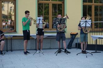 Dieses Fest wurde von einem tollen Programm umrahmt, welches von vielen Schülerinnen und Schülern aus den verschiedensten Klassen mitgestaltet wurde. So zeigten die Klassen 5, – natürlich ganz aufgeregt –, auf ihren Flöten, was sie im Laufe des Schuljahres gelernt hatten, die Bläsergruppe der Schule spielte unter anderem das „Steigerlied“ und die Tanzgruppen der 7b, 6a und 6b rundeten mit ihren flotten Tänzen das Ganze ab.