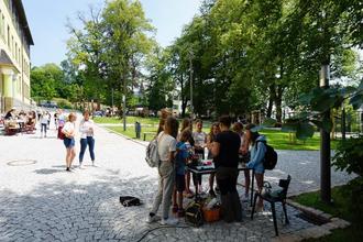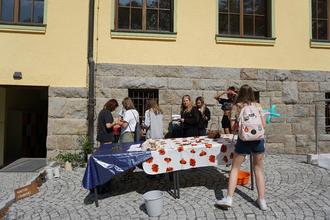 Zum Beispiel gab es einen Kräuterstand, an dem verschiedenste Kräuter gemischt wurden, aus denen ein Mittel gegen Mückenstiche entstand, mit dabei waren auch eine Naturfärberei sowie eine Hennamalerei.