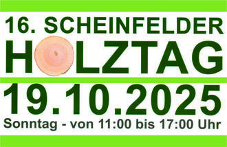 Am 19.10.2025 dreht sich in der Partnerstadt Scheinfeld wieder alles ums Holz. Vom Holzkochlöffel bis zur aufwendig geschnitzten Holzfigur und großen Forstmaschinen ist alles vertreten. Rund 2000 Aussteller aus ganz Deutschland präsentieren von 11 – 17 Uhr Produkte und Dienstleistungen. Infostände und Schauvorführungen machen neugierig, was mit Holz alles möglich ist. Entdecken Sie bei einem Besuch Bayerns größte Ausstellung rund um das Thema Holz.