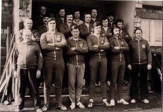 Die Männermannschaft im Spieljahr 1979/80 V. l. n. r. oben: Franz Völkel, Thomas Göbel, Michael Lauckner, Steffen Günther, Michael Sattler, Knut Fichtner, Hans Rockstroh, Stefan Ficker, Jürgen Opp, Frank Göbel, Stefan Völkel v. l. n. r. unten: Paul Graf, Günther Poller, Hans-Jürgen Elter, Sens, Gunter Best und Volkmar Richter.