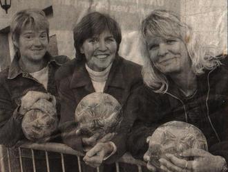Drei Beierfelder Handballerinnen wurden im September 2005 verabschiedet. v. l. n. r.: Kerstin Mehlhorn stand 18 Jahre für den SVB auf dem Parkett und Petra Staffa war 17 Jahre dabei. Kerstin Schrader kam vor 7 Jahren nach Beierfeld und spielte zuvor lange in Magdeburg.
