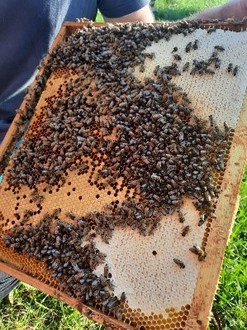Alle Teilnehmenden durften mal ein „Bienenbrett“ in der Hand halten und frischen Honig direkt aus den Waben verkosten.