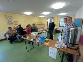Zudem kümmerte sich unser Elternrat mit einem leckeren Kuchenbasar um das leibliche Wohl aller Besucher – dieser fand im Gruppenraum der Bienchengruppe statt, welche sich jetzt im Oktober (wie auch unsere Schmetterlingsgruppe) mit unseren jüngsten Kindergartenkindern neu gründet.