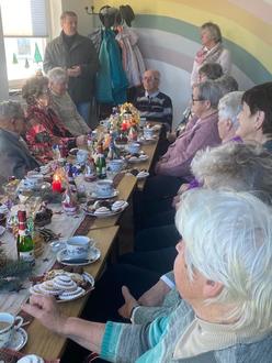 Schon beim Öffnen der Eingangstür kamen uns weihnachtliche Düfte entgegen, denn der Raum war festlich geschmückt und jeder Teller war mit Stollen und Plätzchen vorbereitet. So konnte die Kaffeetafel mit weihnachtlichen Klang eröffnet werden.