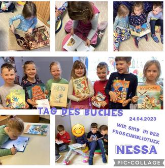 Viele Kinderbücher wurden anlässlich zum Welttag des Buches, am 24.04., von den Kindern mitgebracht und vorgestellt. Dabei ist den Kindern auch aufgefallen, dass es verschiedene Bucharten gibt. Wie Pop-Upbuch, Soundbuch, Geschichten- und Wimmelbücher. Manche Kinder hatten sogar ihr eigenes Buch gebastelt. Beim Vorstellen waren die anderen Kinder sehr angetan und konnten kaum erwarten was auf der nächsten Seite passiert. So hat es sich in der Vorschulgruppe ergeben, dass die Kinderbücher noch ein paar Tage in der Kita bleiben dürfen und es entstand ihre eigene „Froschbibliothek“.
