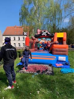 Das Aufräumen wurde mit einer Grill- und Eisrunde im gemütlichen Beisammensein beendet. Für die kleinen Helfer stand eine Hüpfburg bereit.