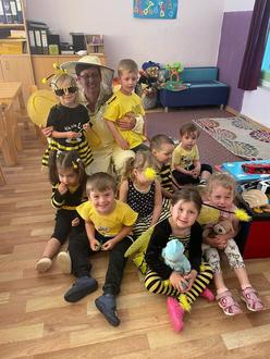 Es ist Sommerzeit und überall summt und brummt es. Die Bienen im Garten fühlen sich sichtlich wohl und sammeln emsig süßen Nektar aus den Blüten. Das hat die Zwerge und ihre Erzieherinnen inspiriert ein Bienenprojekt zu starten.