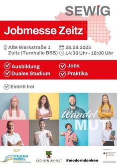 Am 28. August 2025 lädt die Strukturentwicklungs- und Wirtschaftsfördergesellschaft Burgenlandkreis mbH (SEWIG BLK) zur Jobmesse in Zeitz ein. Von 14:30 bis 18:00 Uhr präsentieren sich über 50 Unternehmen aus Zeitz und Umgebung in der Turnhalle der Berufsbildenden Schule (Werkstraße 1).