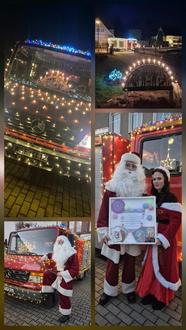 Am nächsten Tag, dem 18.12.2025 setzte sich das leuchtende Gefährt abermals in Bewegung. Doch dieses Mal mit dem Ziel Kinder- und Jugendhaus Teuchern „Villa Löwenherz“. Die Bewohner dieser Einrichtung hatten bereits vor langer Zeit die Wunschzettel an den Weihnachtsmann geschickt und hofften auf die Erfüllung ihrer Wünsche. Durch die vielen fleißigen Helfer, Unterstützer, Sponsoren und Geldgeber sowie der Organisatorin dieser grandiosen Aktion, konnte der Weihnachtsmann mit seiner Weihnachtsfrau jeden einzelnen Wunsch der Mädchen und Jungen erfüllen. Auch die Betreuerinnen freuten sich über eine kleine Aufmerksamkeit. Die riesige Überraschung an dem Abend folgte prompt! Eine finanzielle Unterstützung für einen Tagesausflug in ein Spaßbad mit Übernachtung gab es noch als Zugabe, welche von den Kids mit großem Freudengeschrei in Empfang genommen wurde. Welch schöner Anblick, diese Mädchen und Jungen glücklich zu sehen.