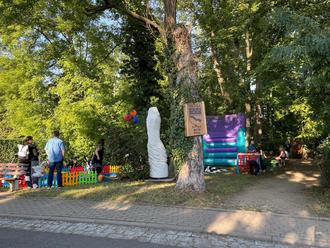 Die Sonne lachte seit den Morgenstunden und zeigte sich von ihrer besten Seite, so dass unsere Gäste von allen Seiten in unseren Park eilten. Am hinteren Eingang konnte man unser neues Kunstwerk bewundern, welches aus Sicherheitsgründen noch mit der Absperrung versehen ist, und von der anderen Seite lachte unser „Dicker Wassergeist“ allen entgegen.