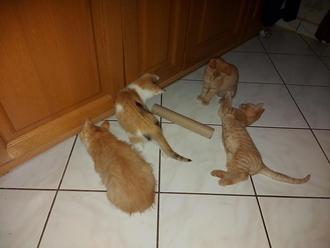 Gott sei Dank ist das eingetreten, was ich die ganze Zeit erhofft hatte, aus den vier Katzenbabys sind vier Katzenkinder geworden, die spielen, toben, balgen, die einfach Spaß haben und das Leben genießen. Sie freuen sich über die Papprolle vom Toilettenpapier, über Knüllpapier und alles was kullert und rollt. Würde ich einen Goldnugget und einen Kieselstein zu ihnen hinwerfen, sie würden sich über beides gleich freuen, sie umherkullern und Spaß haben. Wie viel anders würde der Mensch in so einem Fall reagieren. Denken Sie mal drüber nach. Meine Vier haben mir zwar einige Blumentöpfe umdekoriert und auch Deko demoliert, aber das sind Dinge die wieder repariert oder ersetzt werden können. Die Kleinen haben aber ihre helle Freude damit gehabt. Sicher geht auch manches kaputt, worüber man sich ärgert, aber schlimmer ist ein Beinbruch. Wem die spielenden Kätzchen kein Lächeln ins Gesicht zaubern, der tut mir in der Seele leid. Wir Menschen haben verlernt, uns über kleine Dinge zu freuen. Zum Beispiel über einen Schmetterling, einen Marienkäfer oder einen Sonnenstrahl, der sich durch dicke Wolken gekämpft hat. Für uns zählen materielle Dinge die wir uns zu Eigen machen können mehr, als unsere wunderschöne Natur mit ihren Pflanzen und Tieren. Und trotzdem gibt es hier in Teuchern Menschen, denen das Schicksal unserer Tiere nicht egal ist. Das sehe ich an Ihrer Spendenbereitschaft im EDEKA-Markt, für die ich Ihnen immer wieder danken möchte, aber auch an Suchen von entlaufenen Tieren über Facebook und Hilfeanrufen im Tierheim oder bei mir, bei Katzenbabys in freier Natur. Das ist auch mein Stichwort für heute. Im Oktober werden die Stoppelkatzen (so haben wir früher die im Herbst geborenen Kätzchen genannt) geboren. Welche Katzenmama nun aber kein warmes Plätzchen für ihre Kleinen gefunden hat sondern sie in freier Natur unter Büschen oder Hecken liegen müssen, die werden keine große Chance haben, bei den kommenden kalten Temperaturen und Regengüssen zu überleben. Wir wollen zwar die Katzenpopulationen durch Kastrationen eindämmen, aber wenn sie nun mal auf der Welt sind, dann sollen sie auch eine Chance auf ein schönes Leben bekommen. Deshalb bitte ich Sie, halten Sie Augen und Ohren offen und melden sich, wenn Sie Tiere in Not sehen, denn unsere Tiere sind es wert.