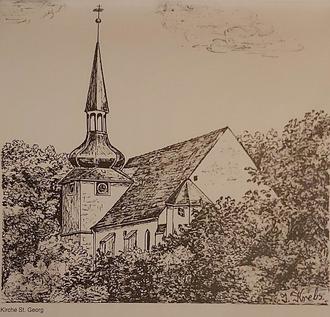 Kirche Teuchern, Bleistiftzeichnung, Ilse Krebs