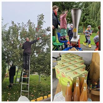 In diesem Jahr konnten wir uns über eine besonders reiche Apfelernte auf unserem Gelände freuen. Die Obstbäume trugen zahlreiche große und saftige Früchte, die wir gemeinsam mit viel Freude gepflückt haben. Ein besonderer Dank gilt unserem Hausmeister sowie Herrn Trebs, die uns tatkräftig bei der Ernte unterstützten. Anschließend wurden die Äpfel gründlich gewaschen und für die Verarbeitung vorbereitet. Mit großer Begeisterung halfen die Kinder dabei, die Apfelstücke in die Presse zu füllen und beim Entsaften zuzusehen. Die Apfelpresse durften wir bei der Firma Nägler aus Naumburg für einen kleinen Obolus entleihen. Viele Eltern spendeten zusätzlich Äpfel, sodass wir am Ende stolze 100 Liter frischen Apfelsaft herstellten – auch dafür ein herzliches Dankeschön. Die ersten Kostproben des selbstgemachten Safts haben allen hervorragend geschmeckt und waren eine wunderbare Belohnung für die gemeinsame Arbeit. Abschließend möchten wir uns nochmals bei allen Helferinnen und Helfern bedanken. Familie Trebs hat außerdem angeboten, im kommenden Frühjahr unsere Obstbäume fachgerecht zurückzuschneiden, sodass sie auch im nächsten Jahr wieder reichlich Früchte tragen.