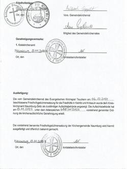 | Für die Friedhöfe in Kistritz und Krössuln gelten folgende Ruhefristen: | |