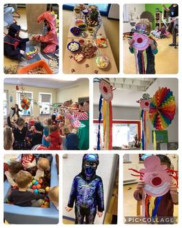 Die ganze Woche sind alle Kinder in der Kita aufgeregt, denn alle bereiten sich auf den 17.02. vor. Was da veranstaltet wird? Na Karneval! Fleißig wurde das ganze Haus dekoriert, Luftballons aufgepustet und Masken gebastelt.