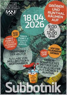 Der Kultur- & Heimatverein Gröben/Runthal e. V. ruft auch in diesem Jahr wieder zum Subbotnik auf.