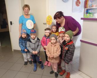 Dazu lernen sie kleine Zahnputzverse und Reime, die ihnen viel Spaß und Freude bereiten. Natürlich wollten wir uns bei Frau Zenker und ihrem Team persönlich bedanken. So besuchten wir am 30.03.2023 die Zahnarztpraxis. Mit einem Ostergruß und einem Dankeschön machten wir den Frauen eine kleine Freude.