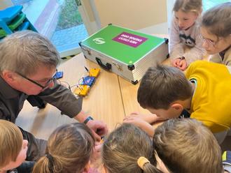 Am 14. Februar besuchte uns ein Mitarbeiter der EnviaM, um mit den Hortkindern verschiedene Experimente zum Thema Windenergie durchzuführen. Die Koffer zum Experimentieren hatten wir bereits zwei Wochen im Voraus zum selber austesten. Die Kinder zeigten großes Interesse und haben selbstständig die Materialien zusammengebaut und Zusammenhänge zum Thema hergestellt. Die genauen Funktionen der einzelnen Materialien in den verschiedenen Koffern erklärte uns der Mitarbeiter noch einmal genauer. Dabei durften die Kinder in Gruppen selbst aktiv werden. Das Ziel war, Energie durch Windkraft zu speichern und ein kleines Auto dadurch zum Fahren zu bringen. So konnten die Kinder neues Wissen erlangen, wie Windenergie funktioniert und wo sie eingesetzt werden kann. Die Kinder hatten Spaß beim Ausprobieren und wir bedanken uns recht herzlich für den schönen Tag, welcher uns sehr bereichert hat.