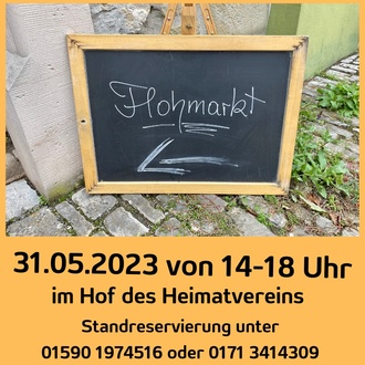 Jeder kennt es. Man hat den Keller voll mit Sachen, die zum Wegschmeißen zu schade sind. Warum nicht jemand Anderen eine Freude damit machen? Wir, das Team vom Pflegeteam zur Sonne und der Heimatverein Teuchern, veranstalten aus diesem Grund einen Flohmarkt! Wenn du Lust zu Stöbern hast, dann komm vorbei am Mittwoch, dem 31.05.2023 von 14 - 18 Uhr in den Hof des Heimatvereins. Ein Stand zum Verkauf eigener Sachen kann gegen eine kleine Mietgebühr von 5 Euro reserviert werden. Die Mietgebühr geht als Spende für Projekte mit Kindern an den Heimatverein. Reservierungen werden unter der Telefonnummer 01590 1974516 oder 0171 3414309 entgegengenommen. Wir freuen uns auf euch.