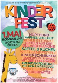 der Kultur- & Heimatverein Gröben/Runthal e.V. lädt euch herzlich zu einem unvergesslichen Tag voller Spiel, Spaß und Genuss ein! Am 1. Mai 2025 verwandelt sich der Sportplatz in Gröben von 11 bis 16 Uhr in ein Paradies für Kinder – und für alle, die Lust auf einen geselligen Feiertag haben. Denn unser Fest ist nicht nur für Familien, sondern für jedermann!