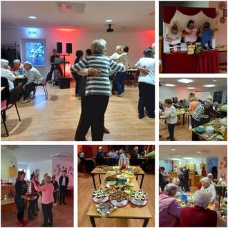 Nach dem Genuss der Stolle und des Kaffees gestalteten die Helfer das Programm und das war gar nicht so ohne, besonders die Akteure kamen dabei ganz schön ins Schwitzen. Die „Liliput-Tänzer“ strapazierten sehr die Lachmuskeln der Senioren, denn Hände und „Füße“ der Liliputs waren nicht von der gleichen Person und damit war es nicht immer leicht beides zu koordinieren. Der Spaßfaktor stand an erster Stelle und wie gesagt, den Senioren hat es gut gefallen und den Helfern Spaß gemacht. Gegen 17:00 Uhr war ein wunderbares weihnachtliches Leuchten im Raum. Auf den Tischen ging das Licht der LED-Kerzen in den kleinen Glaslaternen an, unser Geschenk in diesem Jahr an unsere Senioren. Bei Musik und Tanz verging die Zeit viel zu schnell. Bei einem kalten Buffet konnten sich alle Teilnehmer zum Abschluss stärken und anschließend noch das Tanzbein schwingen, um die Kalorien wieder etwas abzutanzen. Alle freuen sich schon heute auf die erste Veranstaltung im neuen Jahr, die am 14.01. zum „Thema Schnee-Ball – alle tragen weiß“ stattfindet.