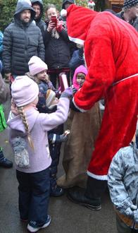 Dieser Nachmittag war vor allem für die Kinder spannend, für sie aufregend die Zeit des Wartens auf den Bärtigen im roten Mantel. Womit er wohl in diesem Jahr angefahren kommen würde? Eines war sicher, ein Schlitten konnte es bei diesem Regenwetter nicht sein. Und dann kam er angebraust auf einem Elektroquad. Die Begeisterung unter den Kindern war groß und sie begrüßten den Alten freudig aber mit respektvollem Abstand.