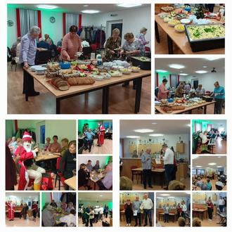 Mit dem Musikstück, Präludium von Bach, wurde die Ehrung für Bernd abgeschlossen und mit dem Singen von Weihnachtsliedern in Begleitung von Astrid sind wir dann zur Weihnachtsfeier und zum gemütlichen Teil übergegangen. Frau Lorenz von der Volkssolidarität überbrachte den Dank und die Anerkennung für die ehrenamtliche Tätigkeit der Helfer der Ortsgruppe im Auftrag des Vorstandes. Aber auch die Senioren übergaben als Dankeschön für die vielen schönen Veranstaltungen im Jahreslauf an alle Helfer ein Präsent. Die Helfer bedankten sich herzlich und versprachen, natürlich auch in Zukunft Veranstaltungen und Tagesfahrten zu organisieren und alles für das Wohlbefinden der Senioren zu tun. Der Bärtige kam auch, um den Senioren eine Freude zu machen, aber was soll ich sagen, erst kam einer der torkelte mit einer Flasche in der Hand über die Tanzfläche und so richtig angezogen war er auch nicht. Da hatte er die Lacher auf seiner Seite. Aber dann ging noch einmal die Tür auf und der „richtige“ Weihnachtsmann mit seinem Gehilfen kam, um den Senioren ein kleines Präsent, natürlich erst nach einem Gedicht oder Liedchen, zu übergeben. Bei weihnachtlicher Musik und Tanz ging der Nachmittag viel zu schnell vorbei. So stand das Abendessen an und die Senioren und Gäste konnten sich am Buffet stärken. Ein Dankeschön an alle fleißigen Helfer, die für einen angenehmen Nachmittag gesorgt haben und an unsere Senioren, die uns in all den Jahren die Treue halten.