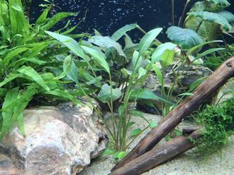 Das Aquarium besitzt ein Volumen von ca. 250 Litern. Damit bietet es genügend Platz für den geplanten Besatz mit Regenbogenfischen und Wirbellosen. Die Einrichtung besteht aus Quarzsand, einer bepflanzten Moorkienwurzel, sowie zahlreichen Wasserpflanzen. Zum Großteil wurden Wasserkelche der Gattung Cryptocoryne gepflanzt. Diese wachsen in den klaren Regenwaldbächen Südostasiens und verbreiten sich über unterirdische Rhizome. Sie stellen eine sehr dauerhafte Gruppe von Aquarienpflanzen dar und werden das Aquarium über viele Jahre zieren.