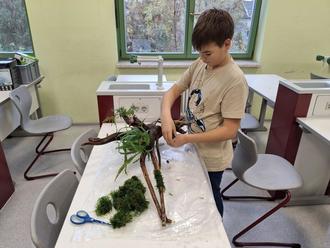 Mit Begeisterung bindet Björn Hofmann (7a) Javamoos, Kongofarn und Javafarn auf eine Wurzel auf. Als typische Aufsitzerpflanzen werden sie nicht gern in das Substrat gepflanzt.