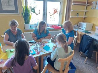 Nach einer guten Reise von Schottland traf unser Gast am Abend des 14. Septembers mehrere einheimische Damen zu einer anregenden Gesprächsrunde. Am nächsten Tag erfolgte eine Schlossbesichtigung in Colditz. Der Nachmittag stand ganz im Zeichen der Handarbeit. Die Gruppen aus Trebsen präsentierten ihre Arbeiten in der Grundschule „Am Storchennest“. Außerdem übten sich die Hortkinder gemeinsam mit den Erwachsenen in kreativer Gestaltung. Die Schulleiterin Frau Annett Rackwitz führte verschiedene neue Errungenschaften vor (z.B. elektronische Tafeln, Storchen TV). Nach dem Abendessen mit dem Partnerschaftskomitee klang der Abend mit einer Einstimmung auf die 22. Highland Games am Schloss Trebsen aus.