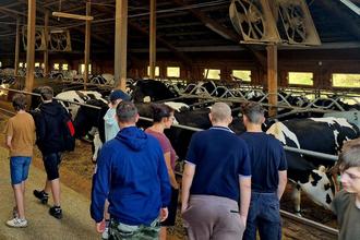 Eine Woche später, am 21.08.2024, unternahmen wir mit der Klasse 8a einen Ausflug zum Landgut Nemt. Dort erhielten wir eine ausführliche Führung durch den Kuhstall, wo wir die Kälbchen und die Melkanlage besichtigen konnten. Besonders begeistert waren die Schüler davon, die Kälber und Kühe streicheln zu dürfen. Die Führung war sehr informativ und wir lernten viel über die Haltung und Ernährung der Tiere. Auch humorvolle Fragen, wie diese, ob Kühe lesbisch sein könnten, wurden offen beantwortet. Nach dem Besuch im Kuhstall ging es weiter auf den Acker, um Schalotten zu ernten. Diese körperliche Arbeit machte hungrig, und so freuten wir uns auf das anschließende Mittagessen, das aus eigenem Anbau und eigener Produktion des Landguts stammte. Die beiden Projekttage, die von der Akademie des guten Essens organisiert wurden, waren eine wertvolle Erfahrung für alle Beteiligten. Wir danken der Akademie herzlich für die Möglichkeit, so praxisnah lernen zu dürfen.