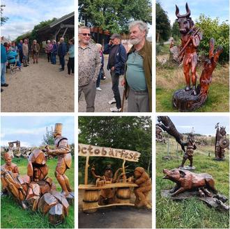 Auf Vorschlag von unseren Reiseteilnehmern organisierte Karin mit Liebelt-Reisen eine Tagesfahrt nach Blockhausen. Wir wollten uns die Figuren, die mit Kettensägen hergestellt werden, selbst einmal anschauen und was soll ich sagen. Aber von vorn. Bei unserer Planung der Tagesfahrten für 2024 stand schon Anfang des Jahres fest, dass wir nach Blockhausen reisen und so sprach Karin den Termin und alle Einzelheiten für die Tagesfahrt mit Frau Meyer von Liebelt-Reisen im Reisebüro Brandis ab. Und Frau Meyer organisierte alles für den 25. September nach unseren Wünschen und Karin die Reisegäste. Und wir freuten uns, dass 37 Reiseteilnehmer am Mittwoch, dem 25. September mit uns gemeinsam 9 Uhr gestartet sind. Unser 1. Ziel war Frauenstein und zwar das Hotel „Frauensteiner Hof“. Wir konnten unter 3 Hauptgerichten schon vorher festlegen, was jeder zu Mittag essen wollte, so dass es keine Verzögerungen gab. Das Ambiente im Gaststättenbereich war wunderbar. Wir waren alle sehr zufrieden mit dem Service sowie auch mit dem Essen. Es schmeckte fantastisch. Gewählt werden konnte unter Fischgericht, Geschnetzeltes oder Rinderbraten. Und natürlich musste auch noch eine Nachspeise her. Man gönnt sich sonst ja nichts, oder? Nach dem wir uns gestärkt hatten, ging es weiter mit der Busfahrt über Mulda nach Blockhausen. Und was uns da erwartete war fantastisch. Schon auf dem Weg zum Erlebnisort entdeckten wir am Waldesrand so manche Figuren wie Wildschweine, Hirsche, die Medusa oder sehr schön gestaltete Sitzgelegenheiten. Als wir am Ziel der Reise waren, musste noch ein kleiner Berg überwunden werden und schon sahen wir die Ergebnisse der letzten Meisterschaft von 2024. Diese Perfektion bei der Gestaltung der Figuren war wunderbar. Wir können nur jeden ermuntern Blockhausen selbst zu erleben und zu erkunden. Im Blockhaus war für uns der Kaffeetisch gedeckt. 3 Stück Kuchen und Kaffee erwartete uns und Andreas Martin, der Mitbegründer von Blockhausen. Während des Kaffeetrinkens erzählte uns Andreas wie hart es war, dies hier aufzubauen und wie die Bürokratie mal wieder zugeschlagen hatte, aber das Ergebnis seines Bemühens und die Unterstützung der vielen Vereinsmitglieder hat sich gelohnt. Jedes Jahr zu Pfingsten wird der Blockhausencup durchgeführt. Er gehört weltweit zu den drei bedeutendsten Wettbewerben im Kettensägenschnitzen. Der Film dazu war beeindruckend. So konnten wir nachvollziehen, wie die Figuren entstehen und wieviel Spaß und Freude es den Teilnehmern macht. Es ist wie in einer großen Familie. Überzeugen sie sich selbst. Sie werden es nicht bereuen. Der längste Tisch der Welt steht im Guinness Buch der Rekorde 2010. 2008 wurde aus einer 41 m langen Fichte der 39,80 m lange Tisch gebaut. 2010 wurde die Haltbarkeit des Tisches getestet. 10170 Flaschen Freiberger Bier fanden darauf Platz, das wären 508,5 Kasten Bier. Pfingsten 2010 entstanden 24 geschnitzte Bergleute, die seit 2012 das Dach des langen Tisches tragen. Schauen Sie es sich selbst an, sie werden es nicht bereuen, diesen Weg auf sich genommen zu haben. Ein Buch „Blockhausen - Magie in Holz“ von Andreas Heinz ist ebenfalls zu empfehlen. In diesem Buch erzählt Großmutter „Zwergi“ ihren kleinen Zwergfledermäusen die Entstehungsgeschichte dieses einzigartigen Ortes. Wollen sie dort länger verweilen, können sie auch Ferienwohnungen mieten, um diesen magischen Ort und die Umgebung zu erkunden. Viele verschiedene Veranstaltungen über das Jahr verteilt laden zum Verweilen in Blockhausen ein. Auf dem Rückweg hielten wir noch an der Wiese zur Auffahrt an, um die vielen verschiedenen Figuren noch zu bewundern. Es war fantastisch. Das Lob der Reiseteilnehmer für diese entspannte, informative und einfach schöne Fahrt war wieder Lohn für die Organisierung durch Karin. Übrigens, wir hatten das Vergnügen vom Chef von Liebelt-Reisen Jens Liebelt persönlich mit dem Bus chauffiert zu werden und das nicht das erste Mal. Wir freuen uns schon jetzt auf die Fahrten für 2025.