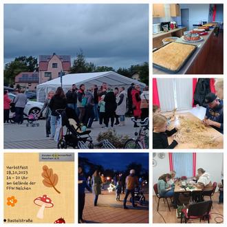 Am 28. Oktober organisierten wir von 14:00 bis 19:00 Uhr ein Herbstfest für die ganze Familie. Da das Wetter nicht so mitspielte, verlegten wir die Bastelangebote und auch das Kuchen- und Kaffeeangebot kurzerhand in den Schulungsraum. Das Bastelangebot für Strohpuppen, Marmorierung von Herbstblättern und der Gestaltung von Herbstwindlichtern wurden gut von Eltern und Kindern angenommen. Sie waren begeistert dabei. Aber auch das Drachensteigen ging an diesem Nachmittag sehr gut und die Kinder sowie Eltern hatten dabei viel Spaß. Das Angebot fürs Kaffeetrinken mit selbstgebackenem Kuchen wurde super angenommen. Wieder ein herzliches Dankeschön an die fleißigen Kuchenbäcker und an Elke und Christel, die sich auch diesmal der „Kaffeestube“ angenommen hatten. Während im Schulungsraum gebastelt und Kaffee getrunken wurde, bewirteten Katrin, Sandra, Marcel, Daniel und Mark unsere Gäste mit Getränken, Fischbrötchen mit Bismarckhering bzw. auch Hexen- und Kürbissuppe. Auch Glühwein konnte bei den sehr herbstlichen Temperaturen getrunken werden, um sich etwas aufzuwärmen. Der Höhepunkt war ohne Zweifel der Lampionumzug für die Kinder und auch Eltern, der von den Kameraden der FFW Neichen begleitet wurde. Unser Bernd Fichtner spielte natürlich wieder auf seinem Akkordeon zur Freude aller Teilnehmer. Diesmal versteckte sich aber keine Hexe im Gebüsch, sondern ein Gorilla und die Kinder waren ganz aufgeregt, als sie wieder an der Feuerwehr ankamen. Ein „Gorilla saß auf dem Dach der Bushaltestelle am Bahnhof und warf mit harten Nüssen“, ein kleines Mädchen sagte mir dies ganz aufgeregt nach dem Lampionumzug. Es war so schön, dies aus Kindermund zu hören und dass die Kinder so begeistert waren. Vielen Dank den fleißigen Helfern an diesem Nachmittag bei allem, was notwendig war, um das Herbstfest zu organisieren und durchzuführen.