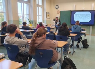 Die Klasse 9a hatte die tolle Möglichkeit, am 23. Oktober 2024 Frau P. Bartoli y Eckert im Rahmen des Deutschunterrichts zu erleben. Die Autorin hat den Leserpreis der Jugendjury im Rahmen des Sächsischen Buchsommers 2024 gewonnen und wurde am Nachmittag in einer kleinen Festveranstaltung in der Bibliothek Grimma mit dem vom Sächsischen Staatsministerium für Wissenschaft, Kultur und Tourismus geförderten Preis ausgezeichnet. Auf ihrer Lesereise fand sie den Weg in die Trebsener Oberschule und las für die Schülerinnen und Schüler. Sie teilte ihre emotionale Geschichte mit ihren Hörern und kam im Anschluss mit ihnen ins Gespräch. Wir bedanken uns für den herzlichen und abwechslungsreichen Besuch! Worum geht es? Kann man gleichzeitig um seine Schwester trauern und sich verlieben? Nachdem ihre große Schwester Sina bei einem Autounfall ums Leben gekommen ist, bricht für die 15-jährige Felicitas eine Welt zusammen. Das Einzige, was ihr von ihrer Schwester geblieben ist, ist der gemeinsame Chat, den Feli nun einseitig weiterführt. Hier hat sie das Gefühl, ihrer Schwester nahe zu sein, fast so, als wäre es tatsächlich möglich, dass Sina ihr online noch antworten könnte. Als Feli dabei erwischt wird, wie sie nachts aufs Schuldach klettert, um von dort die Sterne zu beobachten - was sie oft zusammen mit Sina gemacht hat -, bekommt sie Sozialstunden aufgebrummt. Drei Wochen Dienst im Altenheim! What?! Feli tobt! Aber es nützt nichts, sie muss in den Karlsstift und soll den alten Leuten erklären, wie man mit einem PC umgeht. Dabei freundet sie sich mit der älteren Clara Rotfuß an und beginnt sogar, an freien Tagen die Arbeit im Altenheim zu vermissen. Was neben Clara auch ein bisschen an Vito liegt, der hier ein FSJ absolviert - aber kann man gleichzeitig um seine Schwester trauern und sich verlieben? Ein berührender Coming-of-Age Roman um Verlust, Trauer, Neubeginn und erste Liebe.