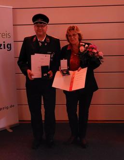 Unsere ehemalige Hauptamtsleiterin, Frau Romy Sperling, erhielt für ihre jahrelange, hingebungsvolle Unterstützung unserer Feuerwehren die Deutsche Feuerwehr Ehrenmedaille in Gold. Dies ist die höchste Auszeichnung, welche vergeben werden kann.