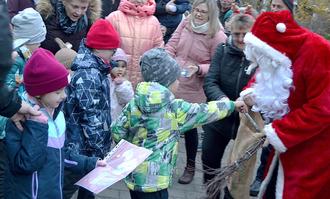 Es herrschte große Aufregung und großer Andrang am Tor, als der herbeigesehnte Weihnachtsmann erschien. Von den Kindern wurde er herzlich begrüßt, die ihm ihre Wunschzettel mit leuchtenden Augen entgegenhielten. Doch erst einmal begrüßte er die Kleinen und gemeinsam sangen sie „Oh Tannenbaum“. Dann erst öffnete er den Sack und schnell war dieser gefüllt mit den Wünschen der Kinder für Weihnachten. Kleine Süßigkeiten hatte der bärtige Mann dabei und gab davon jedem Kind.
